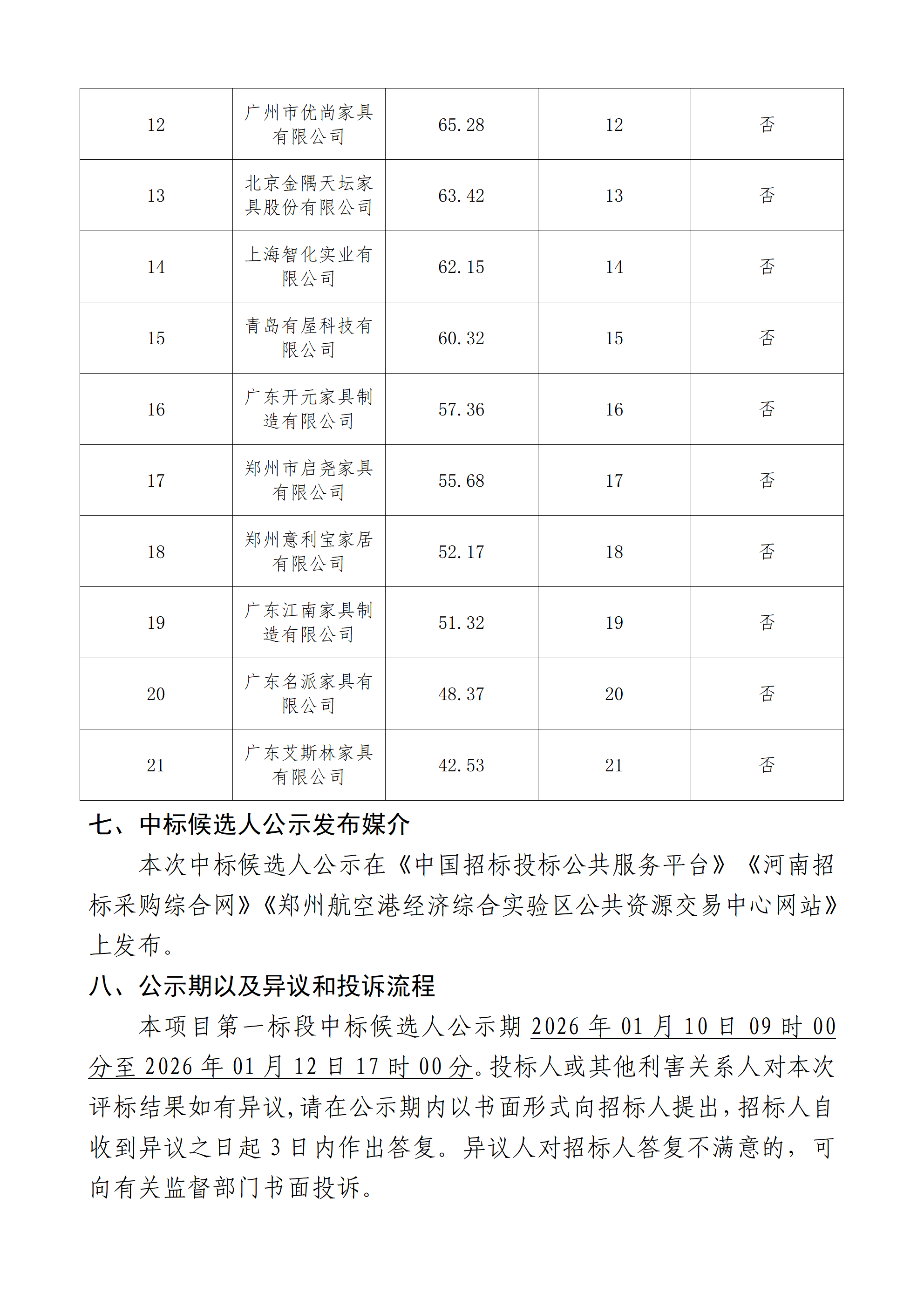 河南才港人力資源服務(wù)有限公司人才公寓家具家電配置項目第一標(biāo)段中標(biāo)候選人公示