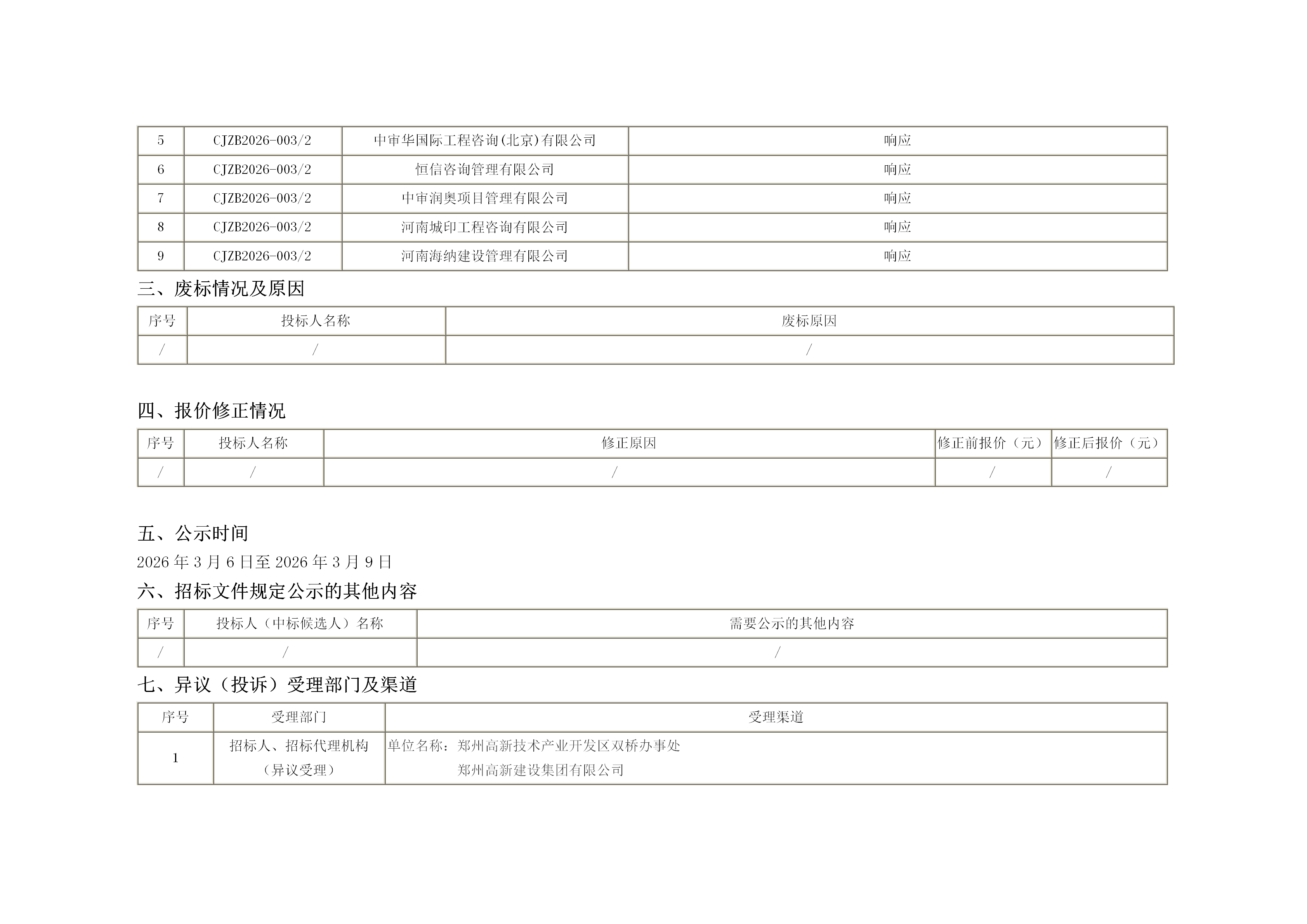 鄭州高新區連霍以北合村并城項目清算造價咨詢服務二標段中標候選人公示